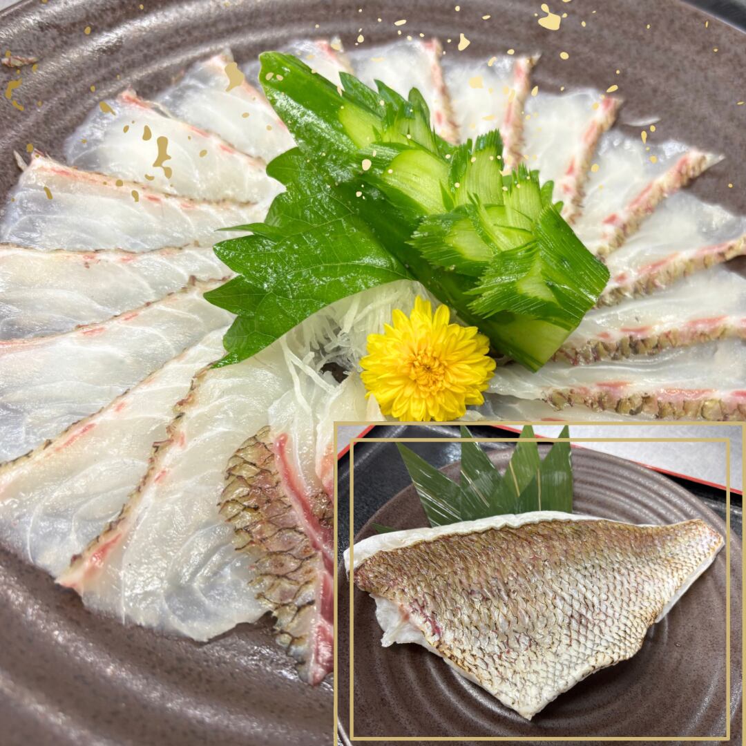 黒潮真鯛 炙りたたき1尾分【冷凍発送】(鱗なし/皮あり刺身用2パック)